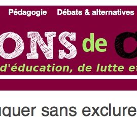 Entretien paru sur le site Question des classes Etiennette Vellas (GREN) et Michel Neumayer (GFEN), qui ont coordonné l’ouvrage Évaluer sans noter, éduquer sans exclure [1] (Lien international d’Éducation nouvelle, www.lelien.org), répondent aux questions de Q2C. Comment est née l’idée de cet ouvrage ? Etiennette Vellas : Ce livre est né de (suite…)… Lire la suite…