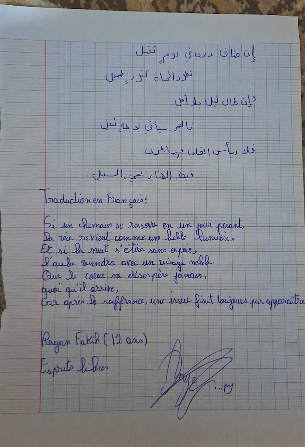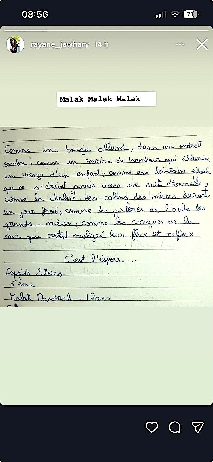 Messages reçus par les réseaux, images, textes d’enfants
